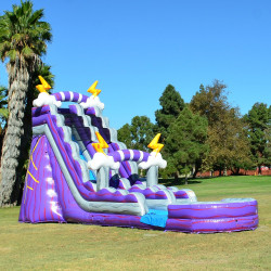 Get ready for an electrifying experience with our Lightning 20Ft. Slide! Featuring striking yellow lightning bolts against a vibrant purple backdrop, this slide is a surefire way to capture everyone's attention and ignite the excitement at your event.